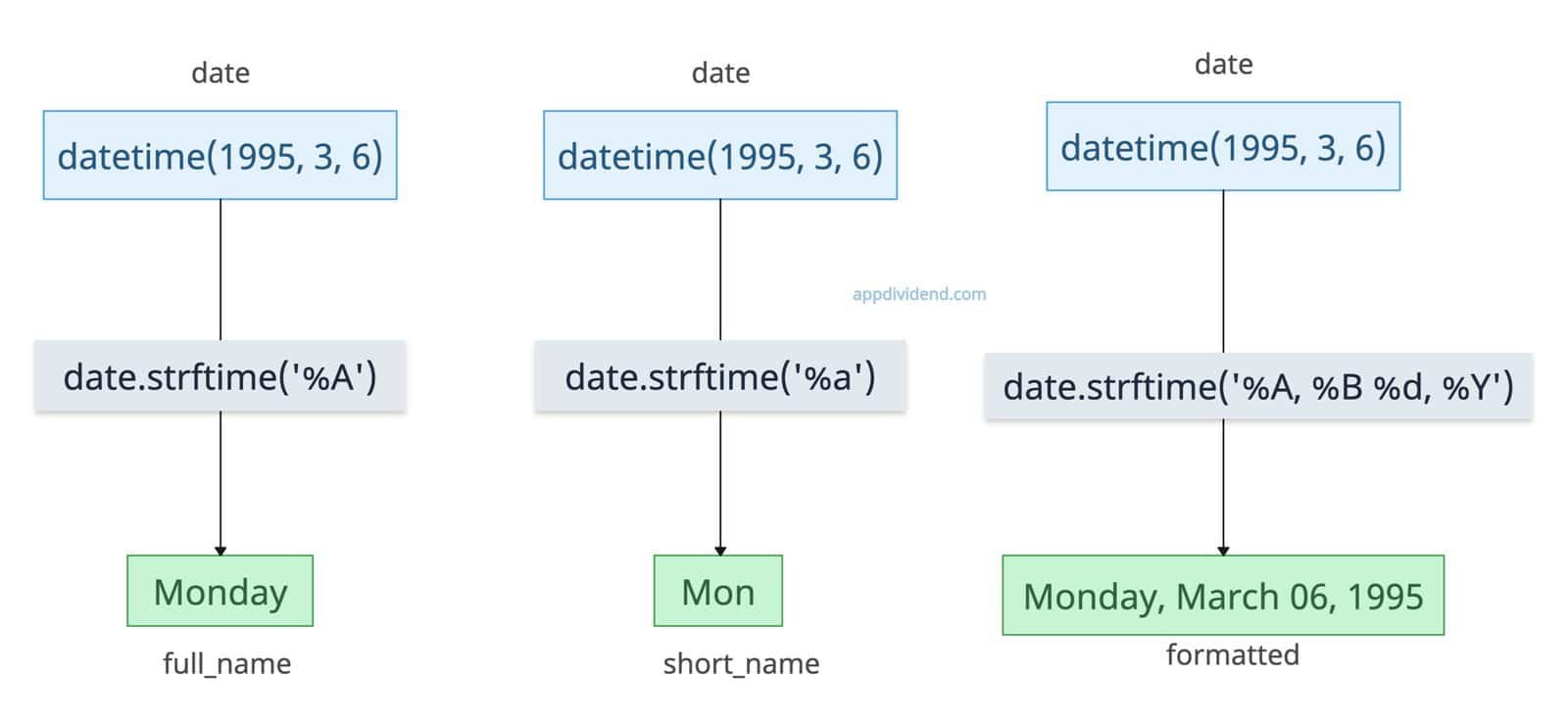 Another user-friendly approach is to use the datetime.strftime() method.