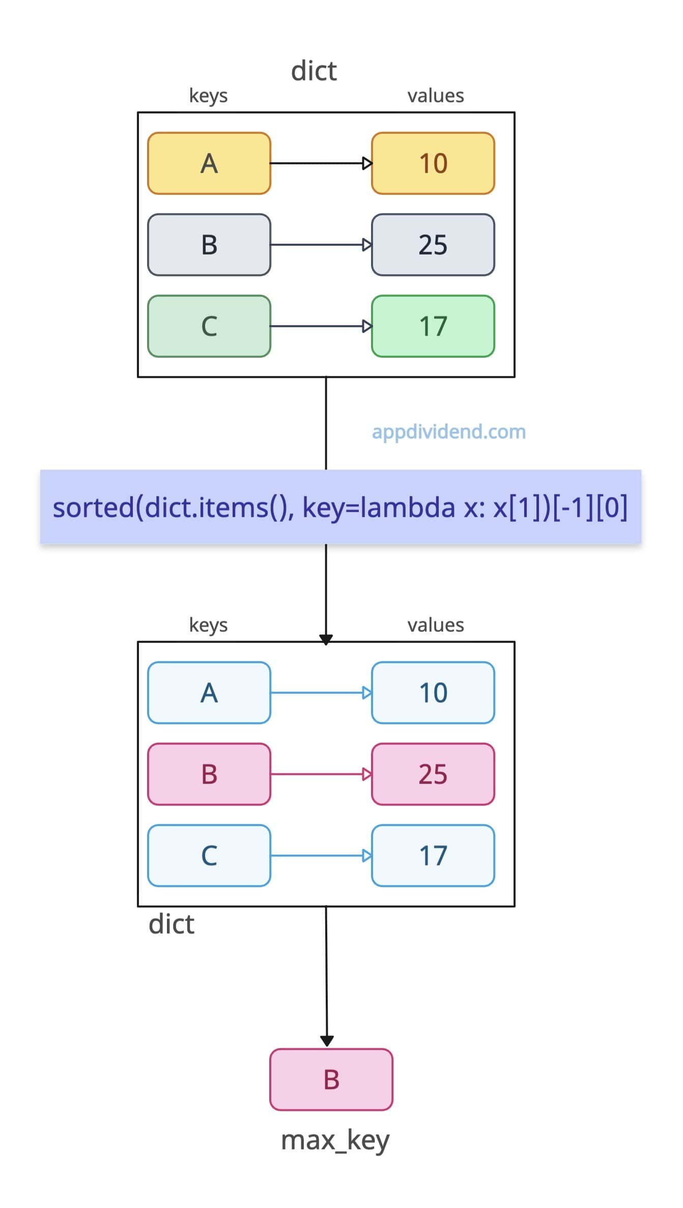 But what if you want all the keys with maximum values? In that case, you need to use a list comprehension to get the list of keys.