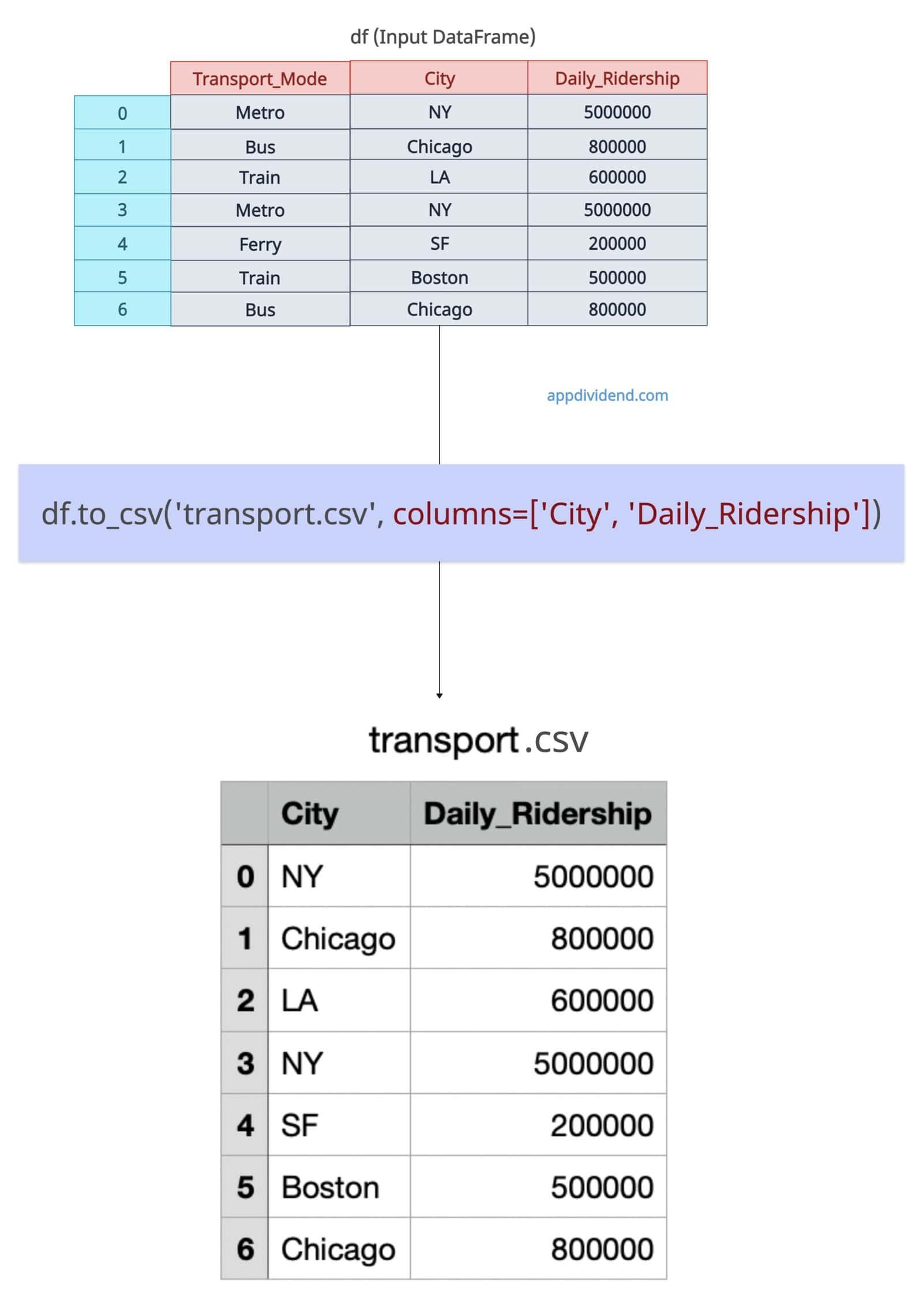 df.to_csv('transport.csv', columns=['City', 'Daily_Ridership'])