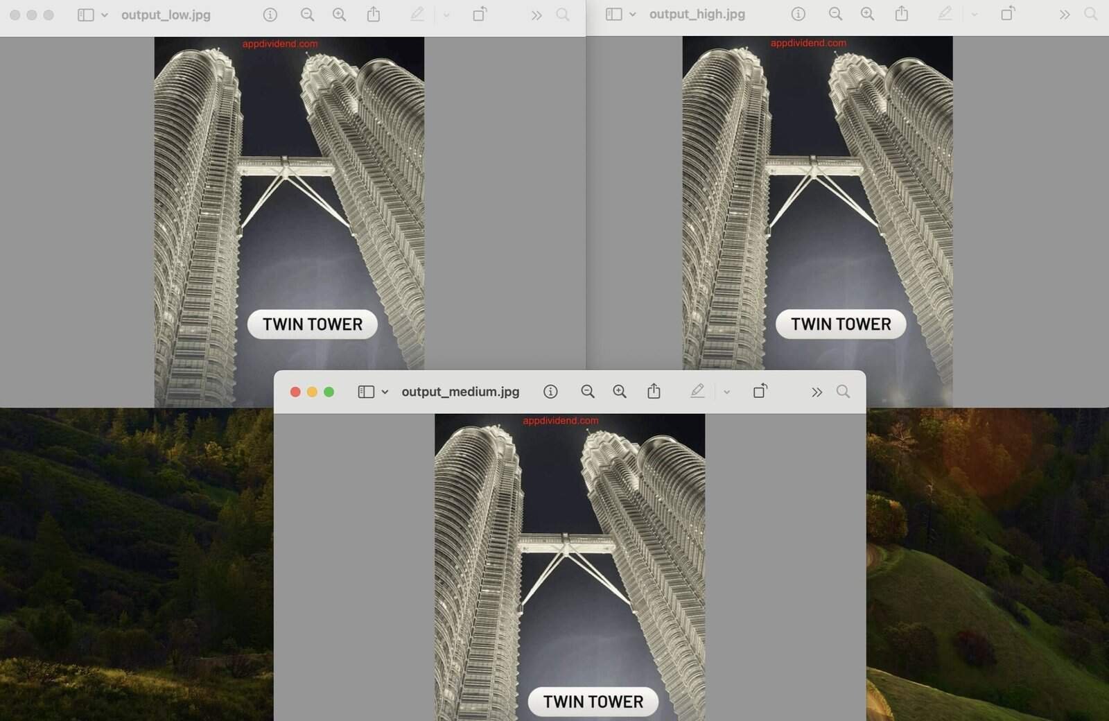 The qualities range from 1 to 95 (100 allowed but not recommended — no gain, bigger size). It affects file size and detail retention.