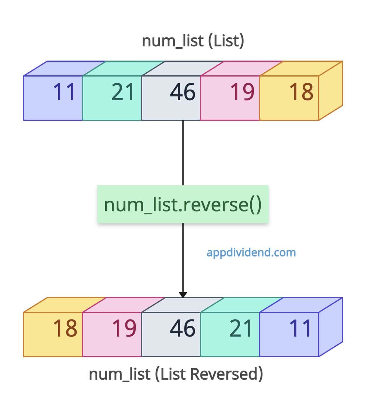 Reversing the list means rearranging the elements so that the first becomes the last, the second becomes the second-to-last, and so on.