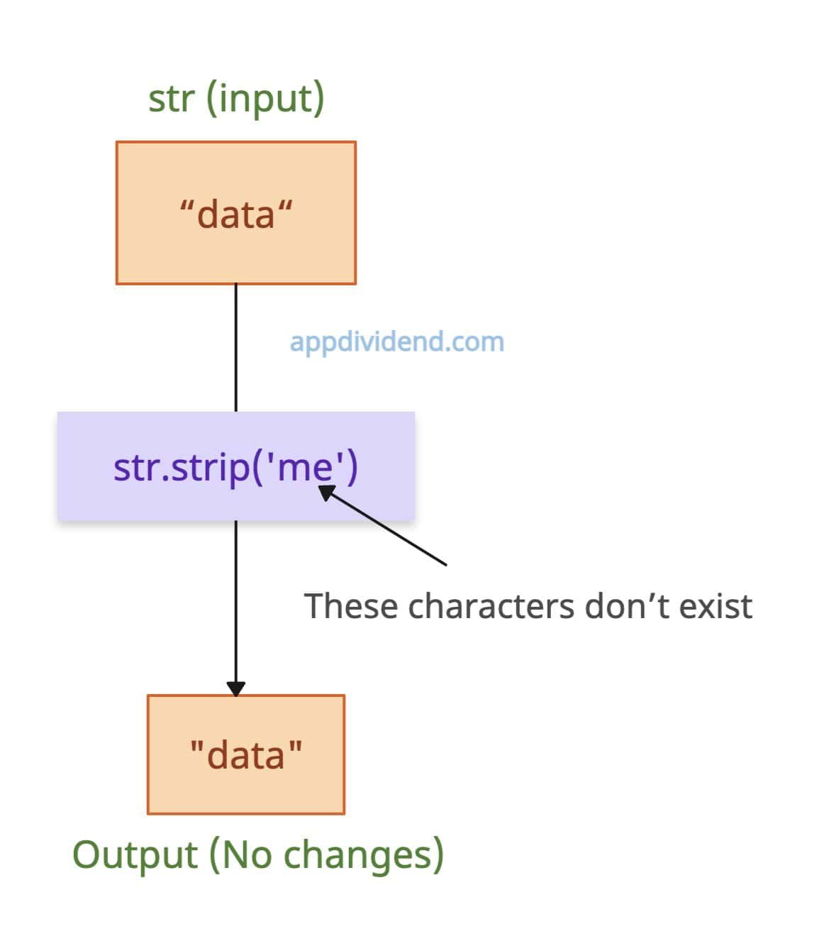 In the above code, we are stripping three characters: G, o, and o. Since all three characters appear at the start of the string, they were removed. Here, “Goo” is removed, not as a substring, but as individual characters.
